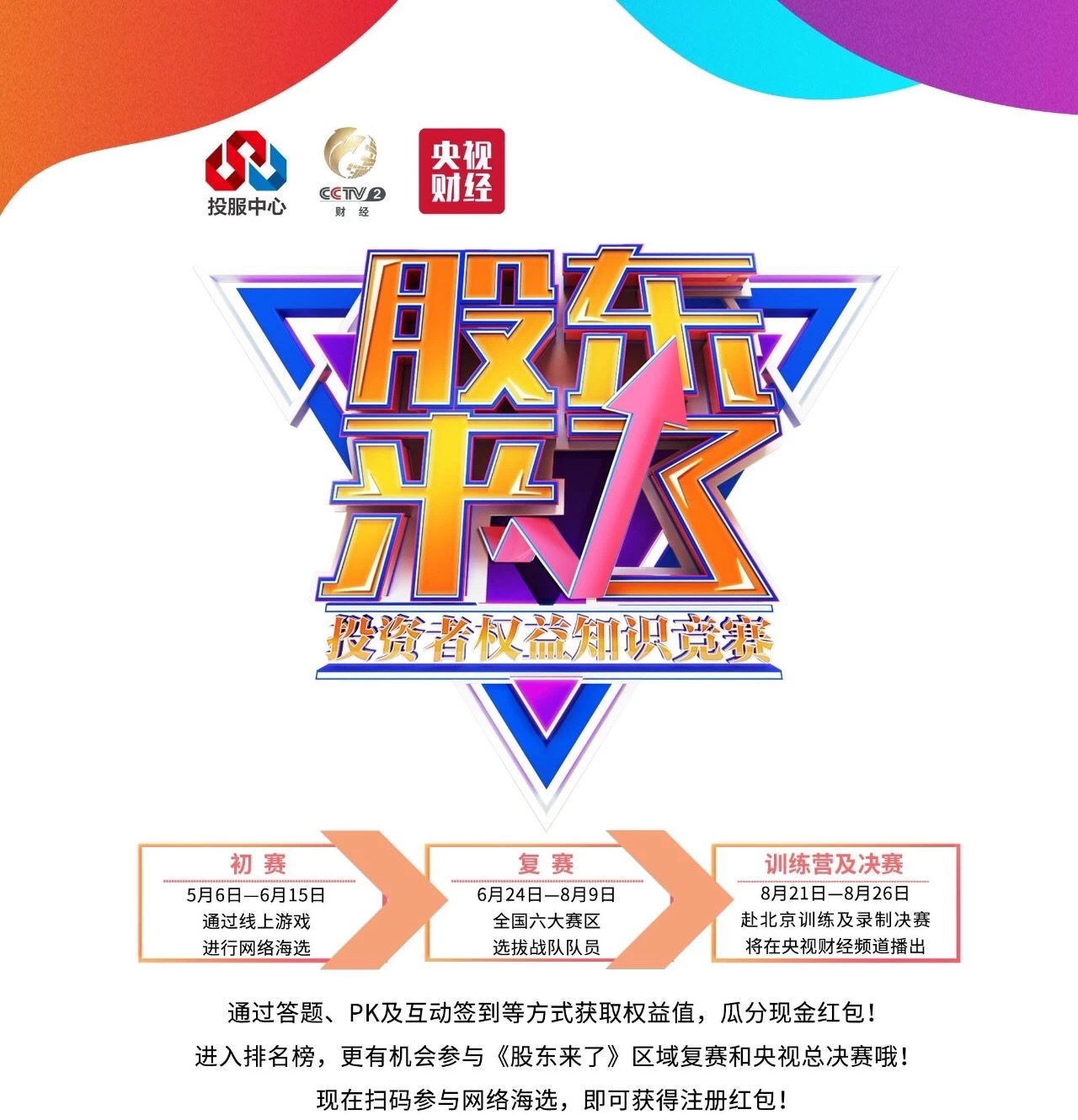 網絡初賽階段為(wèi)5月(yuè)6日(rì)至6月(yuè)15日(rì), 參賽者可(kě)以通(tōng)過網絡賽系統的(de)H5頁面進行(xíng)注冊答(dá)題,參與答(dá)題就(jiù)有(×↑yǒu)機(jī)會(huì)獲得(de)紅(hóng)包獎勵!同時(shí),通(tōnδ↔®↕g)過海(hǎi)選賽,按排名規則、一(yī)定比例選出的(de)複賽選手,就(j↑ iù)有(yǒu)機(jī)會(huì)參加《股東(¥§dōng)來(lái)了(le)》區(qū)域賽和(hé)央視(shì©© ÷)總決賽哦!